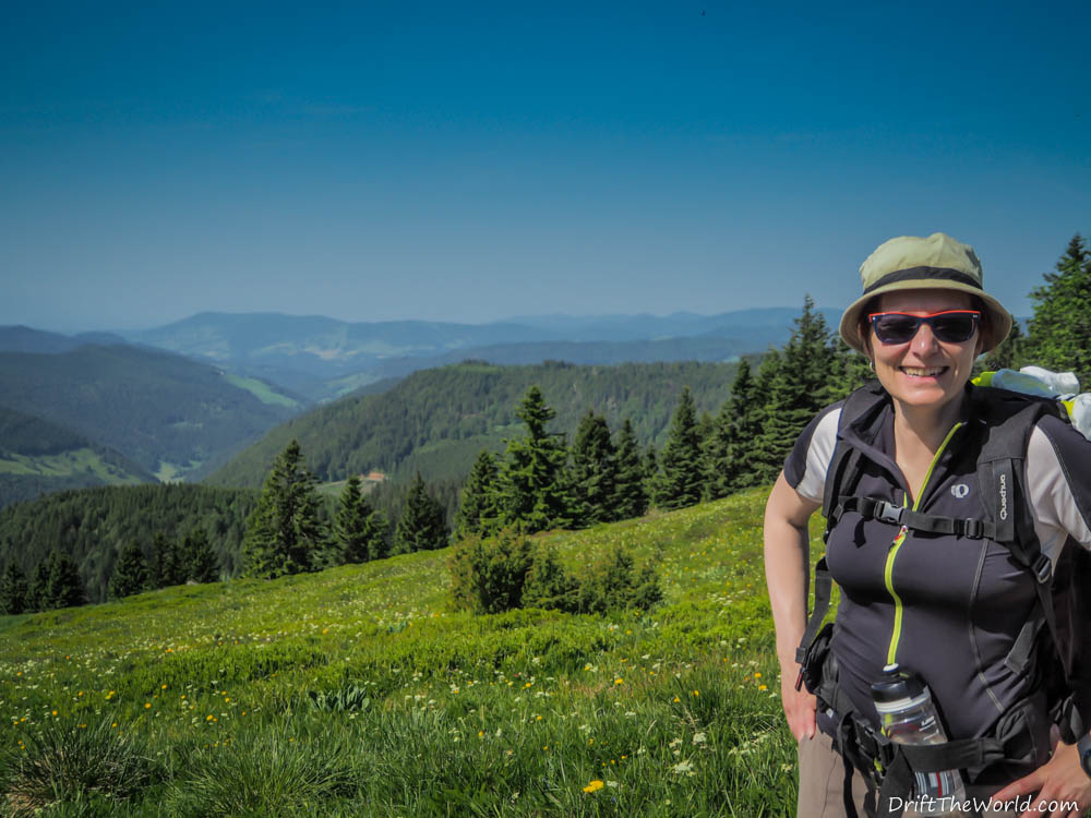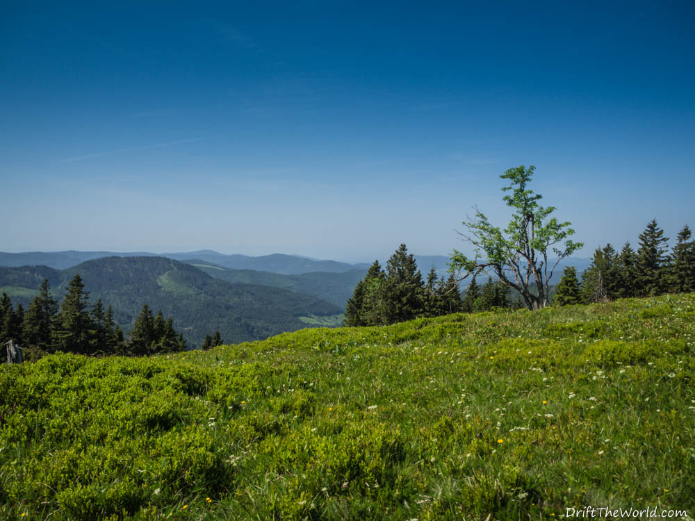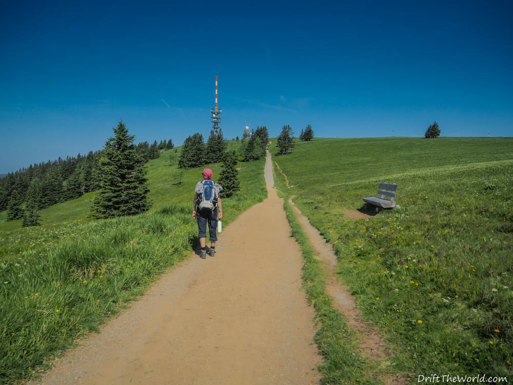 Wir sind so gegen 10 Uhr auf dem Feldberg auf etwa 1400 Meter Höhe und das Thermometer zeigt bereits 26° Celsius. Wir sind froh schon jetzt hier oben zu sein und nicht erst zur Mittagshitze. Meine schmerzenden Blasen werden mit der gleichen Taktik wie Tags zuvor bekämpft. Es klappt heute nicht ganz so gut aber es hat noch gereicht.