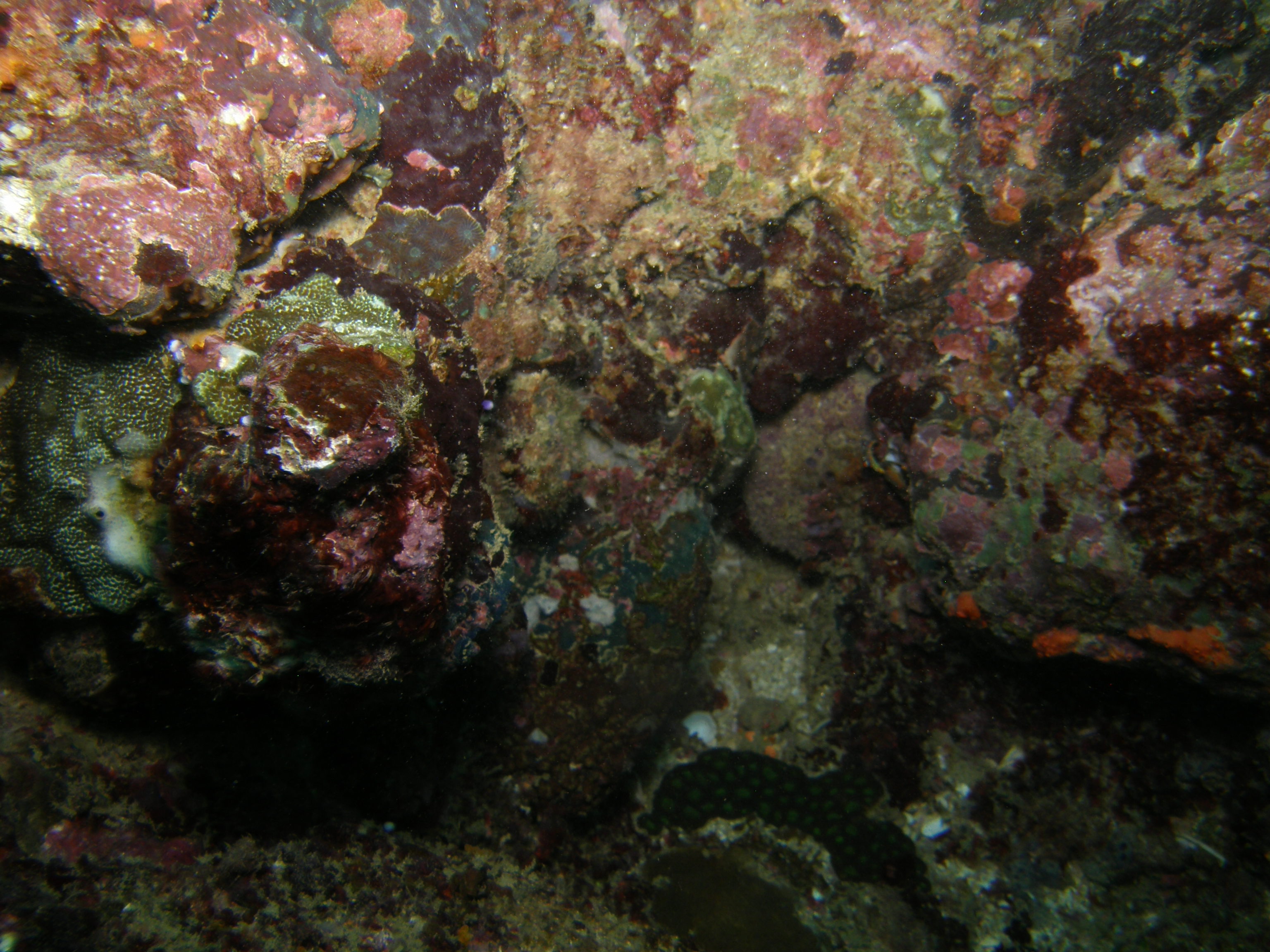 Während einer kurzen Pause an Land fragt mich Roshan, ob ich mit ihm durch eine kleine Höhle tauchen möchte. Noch bevor ich antworten kann versichert er mir, dass mir überhaupt nichts passieren kann da er ja bei mir ist. Etwas unsicher stimme ich zu. Hey, nur Herausforderungen bringen einen weiter. Als wir dann im Wasser sind vor der Höhle – die ich zunächst gar nicht so wirklich erkenne – denke ich für einen Moment: „Ähh, nö, doch nicht.“ Und wieder schaffe ich es, mich zu beruhigen und mir von der Angst nicht eine tolle Gelegenheit rauben zu lassen.