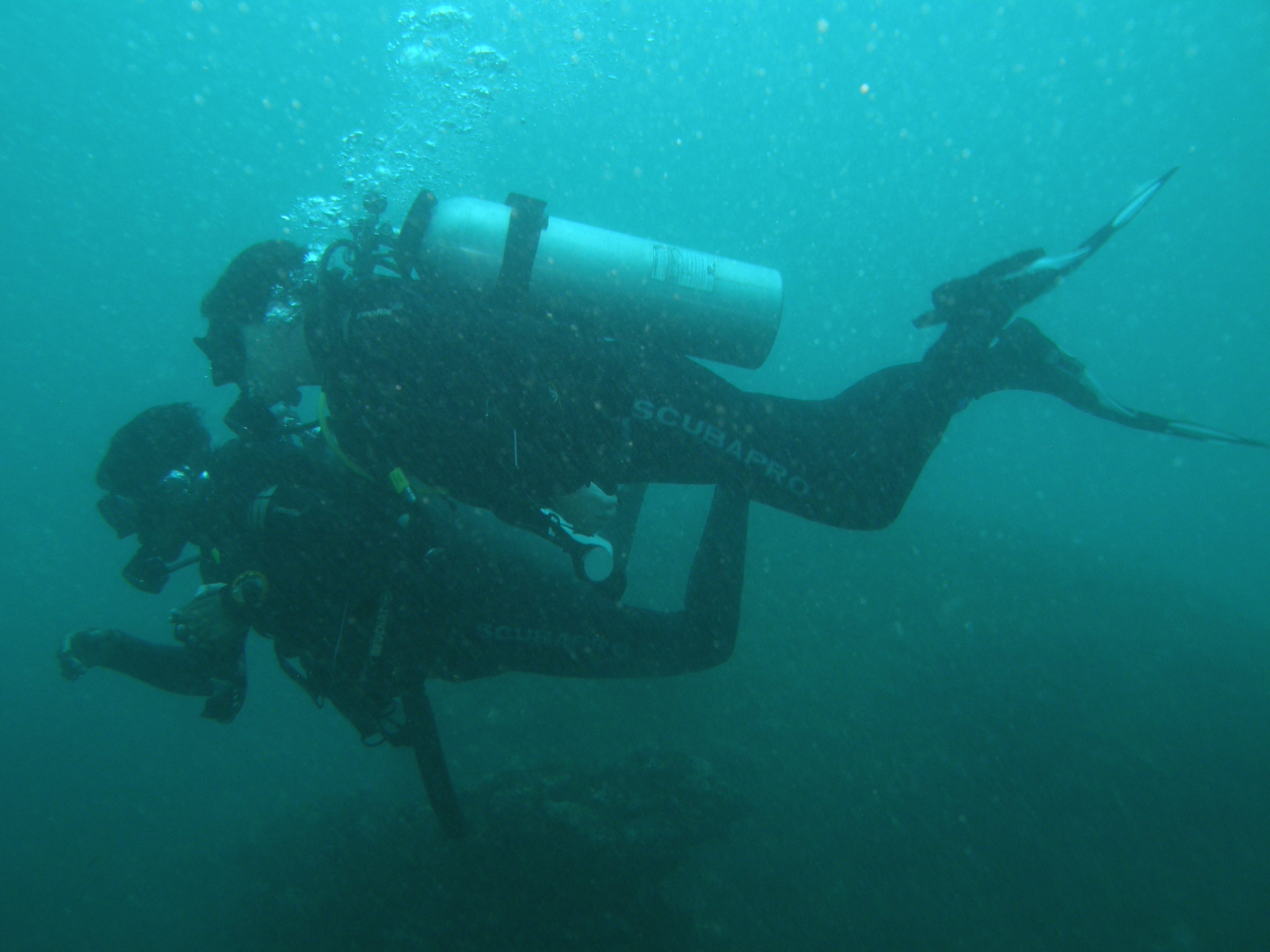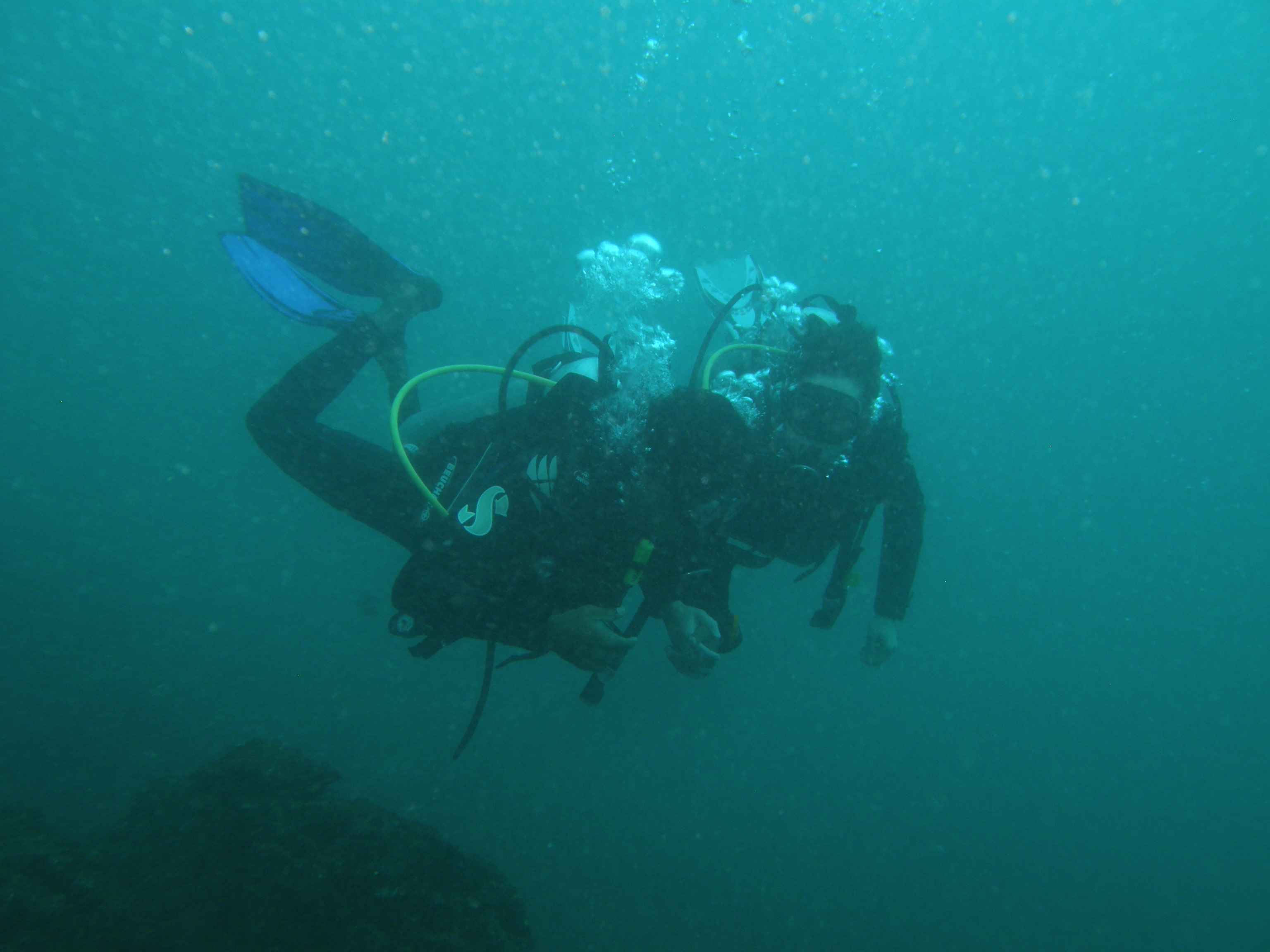 Am Anfang ist die Sicht nicht so gut. HAH! Sicht nicht so gut?? Ich freu mich wie ein kleines Kind an der Sicht, kein Vergleich zum Zürichsee…schlechte Sicht? Die haben doch keine Ahnung 🙂 Kristy muss leider auftauchen, weil ihr Jacket Probleme macht. Roshan und ich bleiben unter Wasser, wechseln die Stelle und haben dann tatsächlich auch Glück mit der Sicht. Roshan ist der Hammer. Er hat mich wortwörtlich während des ganzen Tauchgangs an der Hand. Ich fühle mich nicht einen Moment unsicher – das ist einfach echt unglaublich genial.