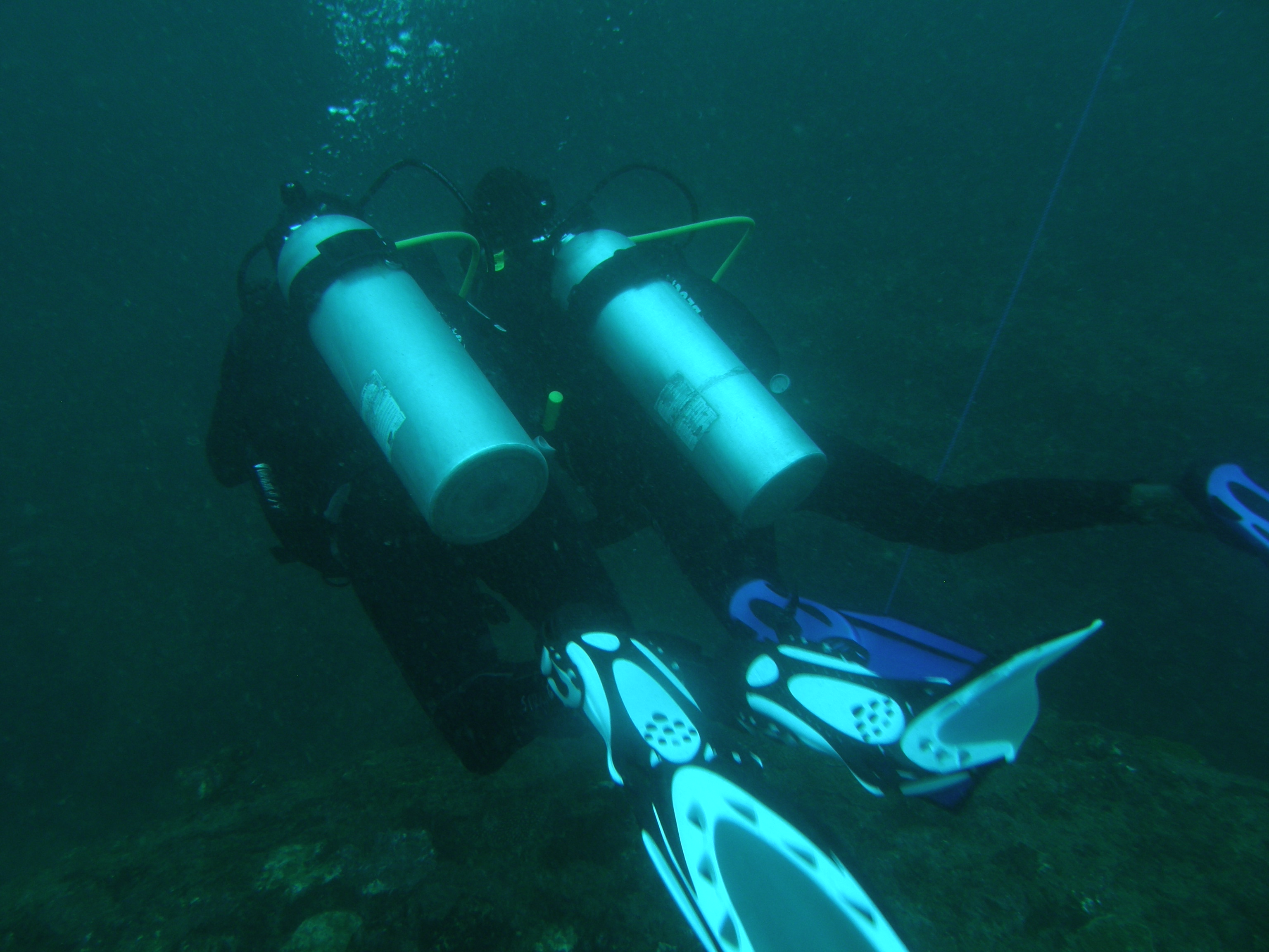 Ein kurzes Zögern bei der Rückwärtsrolle vom Boot ins Wasser – hey hier schon zu scheitern kommt ja wohl mal gar nicht in die Tüte. Geschafft, bin im Wasser und kämpfe mich zum Ankerseil. Die ersten Momente unter Wasser fühlen sich echt verdammt komisch an. Und wieder gibt es dieses kurze Gefühl wo ich echt das Bedürfnis habe auftauchen zu wollen. Aber ich weiss genau, dass es Kopfsache ist und vor allem, dass ich es bereuen würde. Ich versuche also meinen Kopf runterzufahren und mich auf meine Atmung zu konzentrieren. Wenn es wirklich nicht mehr geht kann ich ganz einfach wieder auftauchen, sage ich mir. Und es hilft. Ich tauche nicht auf und absolviere meinen ersten richtigen Tauchgang.